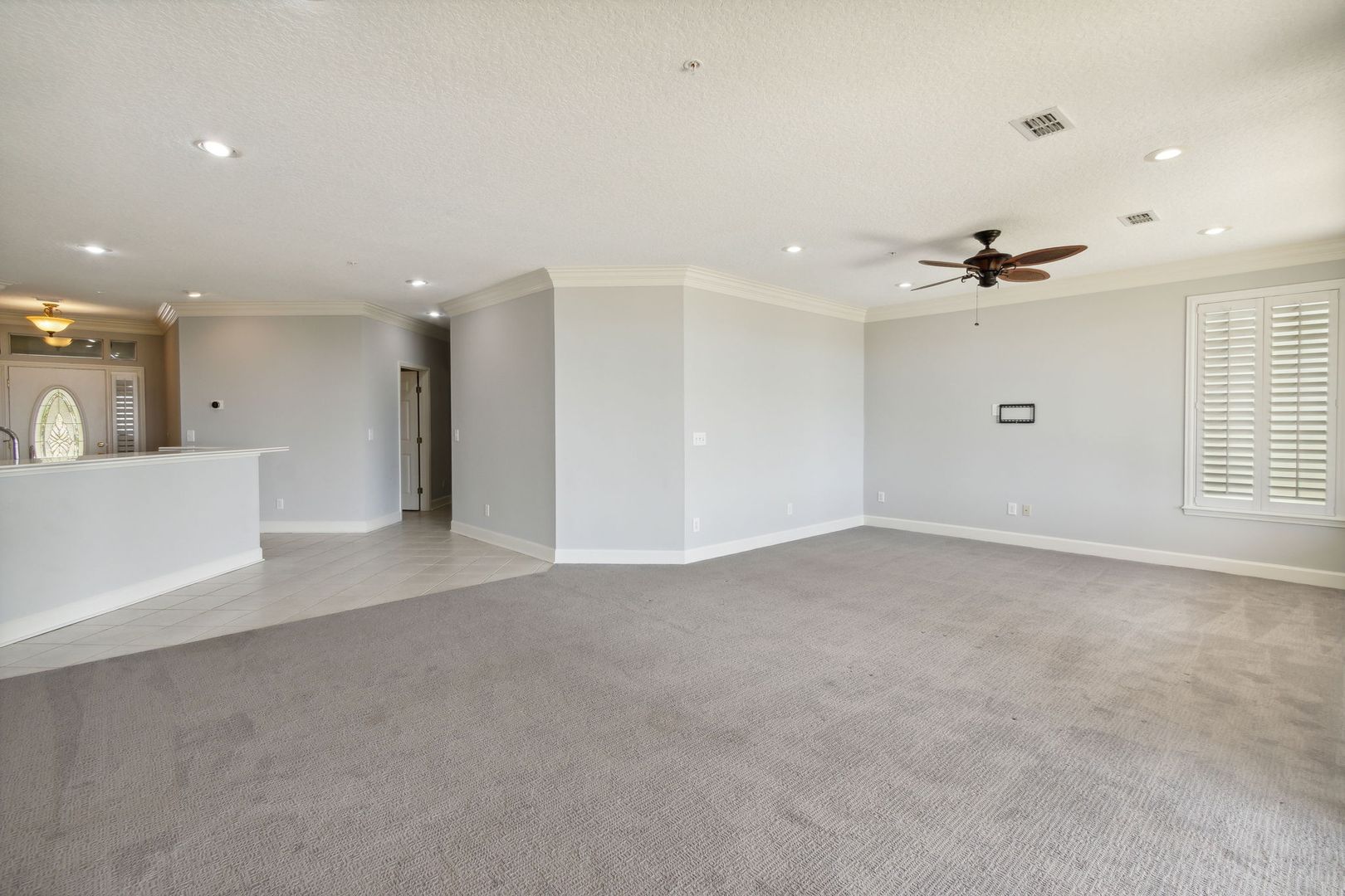 This beautiful, unfurnished OCEANFRONT condo is available for long-term (12-month) rental.  The spacious three bedroom 3 bath home is located on the first floor with private beach access in the prestigious gated community of Ocean Village.  Includes a single car garage with additional parking and storage.  The spacious floor plan features an open kitchen, family room, and dining area, all with breathtaking views of the Atlantic Ocean.  The main suite features a luxurious bath with a walk-in closet and access to the large covered oceanfront lanai.  Enjoy preparing a meal in this all white kitchen with an abundance of cabinets, counter space, and new appliances, all while sipping a beverage and watching the ocean waves.  This condo features many amenities, including covered front and rear porches, plantation shutters throughout, and push-button hurricane shutters.   Two community pools and a dedicated beach walkway are just a few steps away.  Call today for your preview.  No Pets  -12 Month Rental only